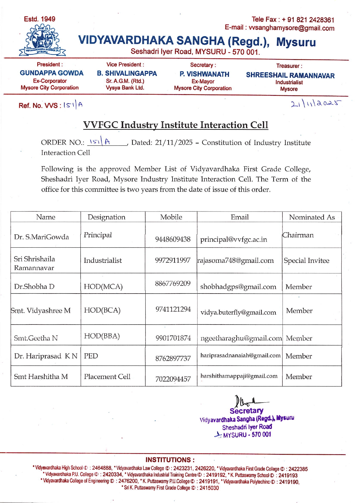 Interaction between technical institutions and industry is the need of the hour. Industry Institute Interaction will have great bearing on the curriculum, exposure of students to industrial atmosphere. There is a need to create avenues for a close academia and industry interaction through all the phases of technology development, starting from conceptualizing to commercialization. The Industry Institute Interaction Cell is established at VVFGC with the following objectives: